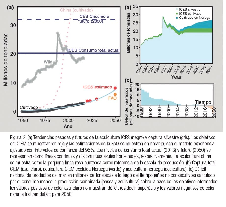 Este análisis desarrollado por investigadores de la Universidad de California, la Universidad de Stirling, la NOAA y agencias e institutos colaboradores de Alemania, España, Reino Unido, Finlandia y Estados Unidos refleja el futuro de los productos del mar para las naciones y el sistema alimentario del CIEM la rendición de cuentas en un mercado global, incluidas las estrategias de adaptación en un clima cambiante, basadas en el análisis comparativo de las tendencias generales de la captura silvestre de la pesca frente a la producción acuícola durante las últimas cinco décadas.