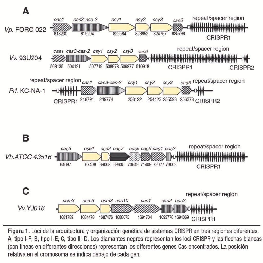 Organización y diversidad de sistemas CRISPR / Cas en el genoma de Vibrionaceae