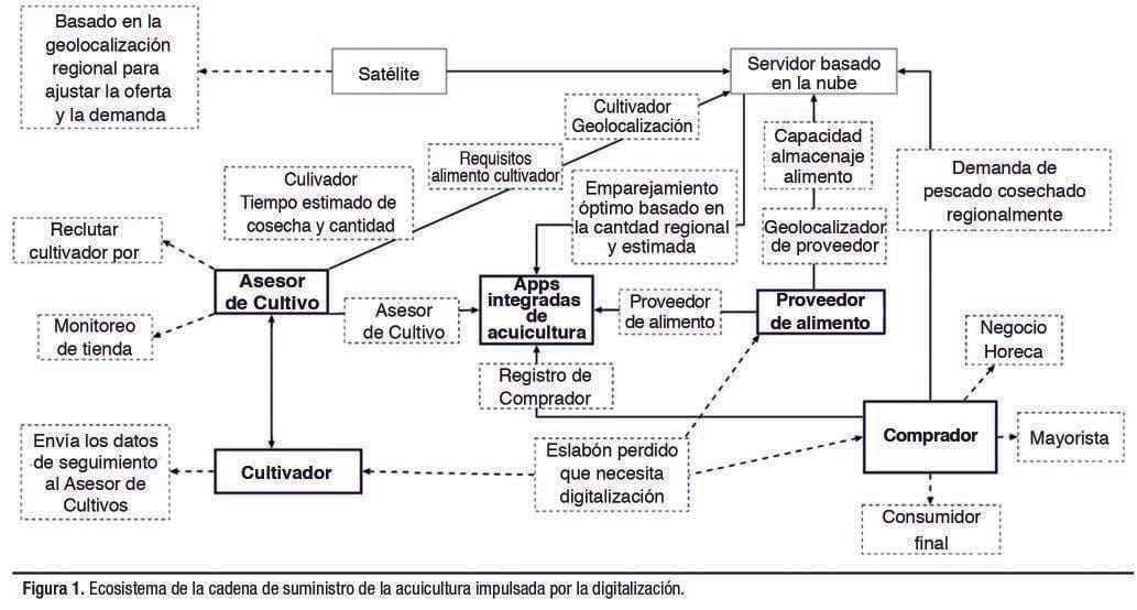 En este estudio se realiza una revisión bibliográfica sobre los desarrollos más recientes en acuicultura, y se propone un diseño del ecosistema y el modelo conceptual del sistema de estimación enfocado en la cadena de suministro digital (DSC, por sus siglas en inglés), con la expectativa de mejorar la rentabilidad de los productores.