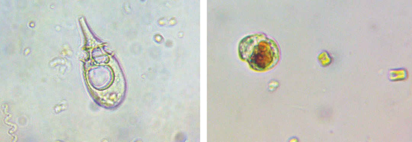 Los dinoflagelados son protistas con flagelos pertenecientes al grupo de fitoplancton. Junto con otro tipo de fitoplancton, estos ingresan a través de la entrada del agua e inmediatamente proliferan en abundancia al encontrarse con los nutrientes (nitrógeno y fósforo), y en las condiciones favorables.