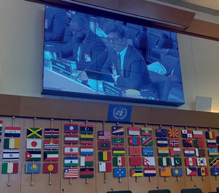 Los protocolos también hacen que no todos los participantes estemos en la misma sección, los delegados (2 por país) están convidados al salón plenario, mientras que aquellos delegados que exceden el número permitido deben ubicarse en el salón rojo y los observadores quedamos todos en el salón verde.