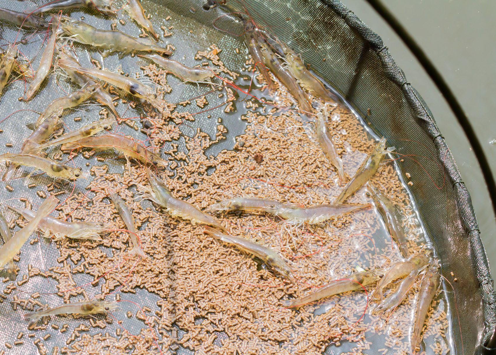 Se han realizado múltiples estudios con ingredientes obtenidos de animales terrestres y soya, como alternativas para la harina de pescado en alimentos para camarones. La eficacia de estos productos en su dieta también puede verse afectada por el método de cultivo, como la tecnología biofloc, sistema en el cual los alimentos naturales están presentes.