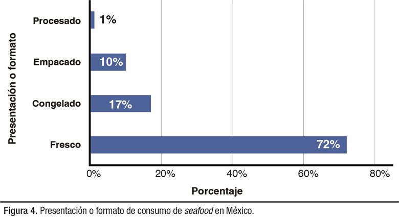 El 72% lo consume o lo busca fresco, un 17% congelado y un 10% empacado (Figura 4).